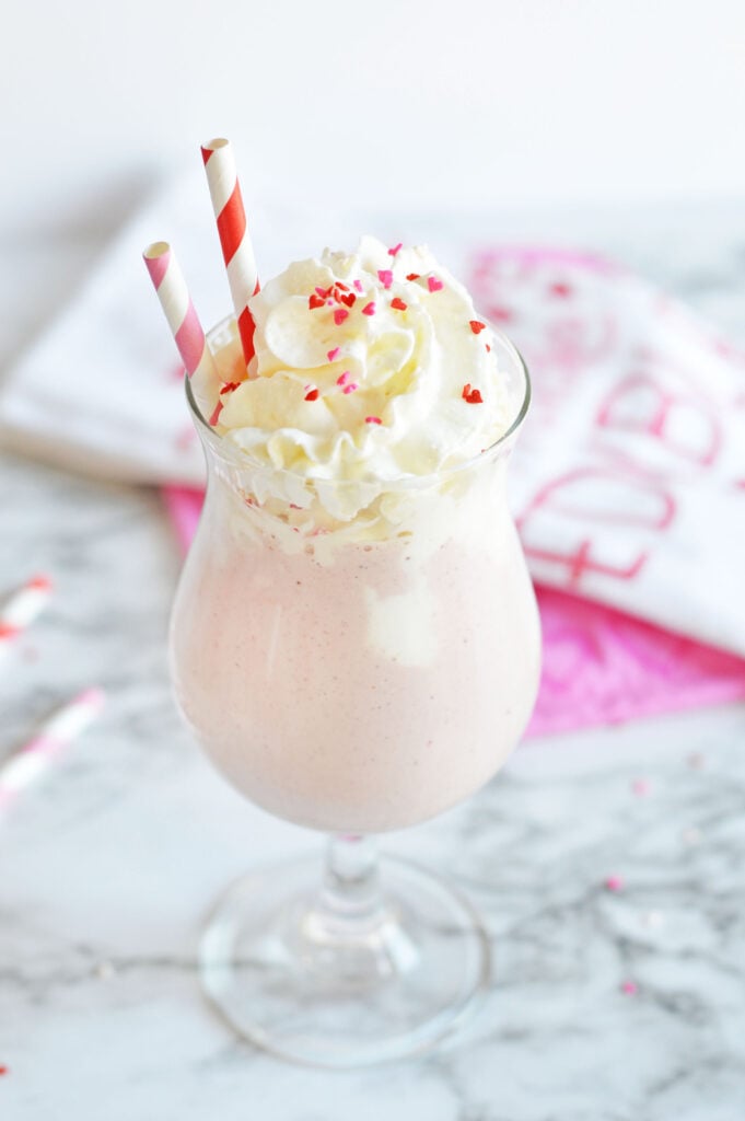 - Top with whipped cream and miniature heart sprinkles. Enjoy!
