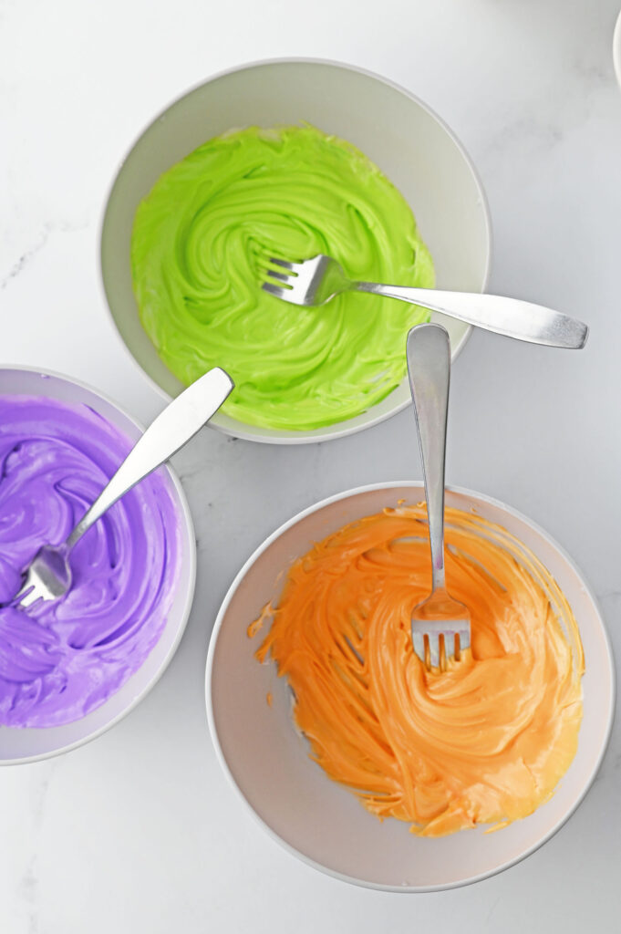 TIP: Gel food coloring works best here because it keeps the icing thick and vibrant!