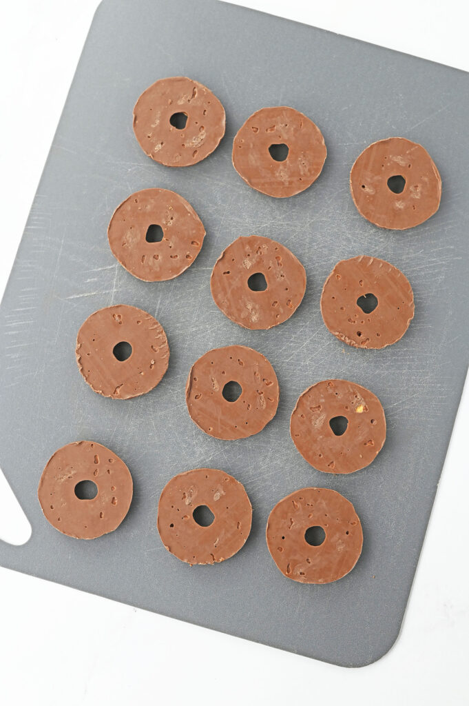 - Lay out your fudge stripe cookies upside down onto a cutting mat.