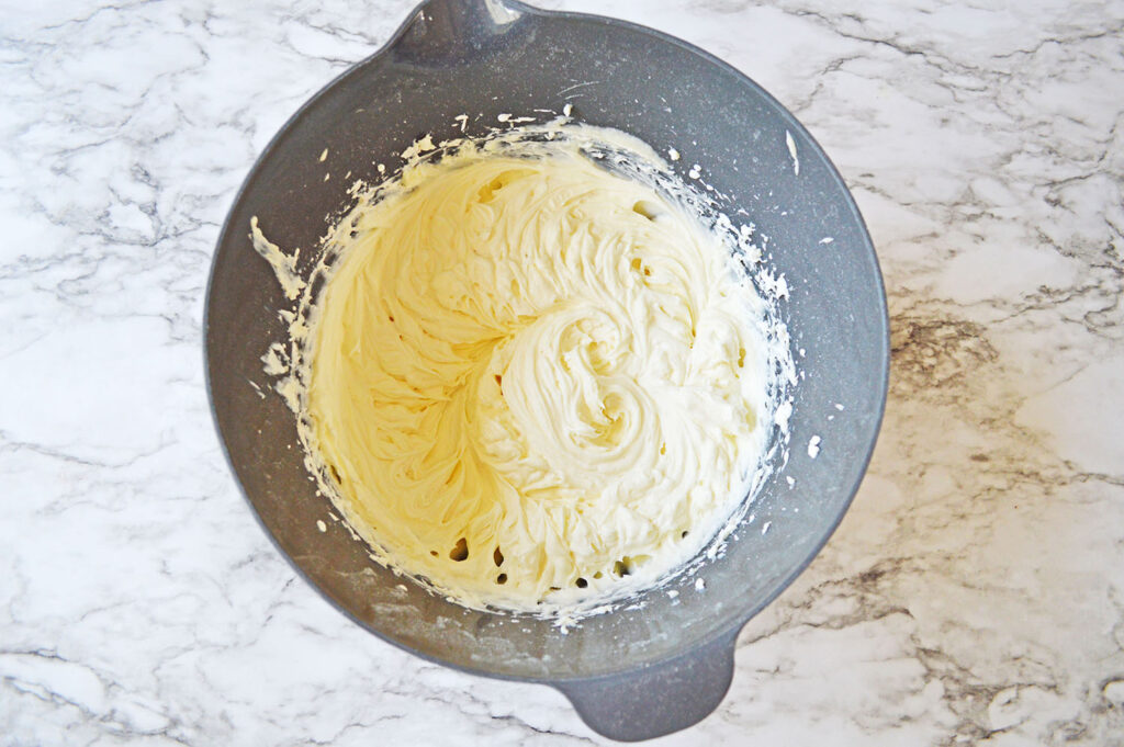 - Add the whipped cream to the frosting mixture, and mix well to combine.