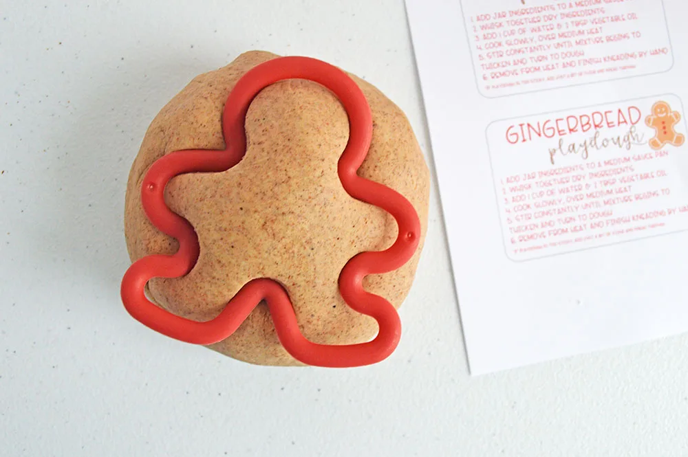 Have you finished planning all of your Christmas gifts, yet? I have a really cute DIY Gingerbread Playdough Gift in a Jar idea with playdough gift tags. Basically, you are gifting the activity of making your own homemade playdough. You include all of the dry ingredients in your jar, then the recipient just needs oil and water to make their dough. You can download these adorable gift tags to attach and grab a gingerbread man cookie cutter from the dollar tree to finish off your gift. This is a perfect gift for your kiddo’s classmates, and you could buy the ingredients in bulk to make several. It would also be a fun stocking stuffer for your own kiddos, and then you could make it together.