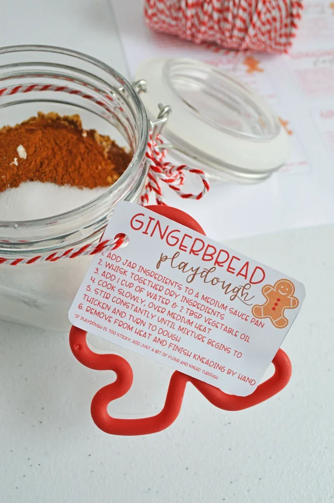Gingerbread Playdough Gift in a Jar | Playdough Gift Tags