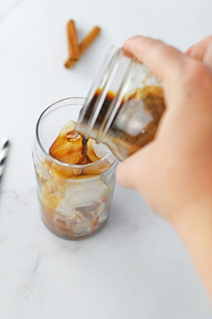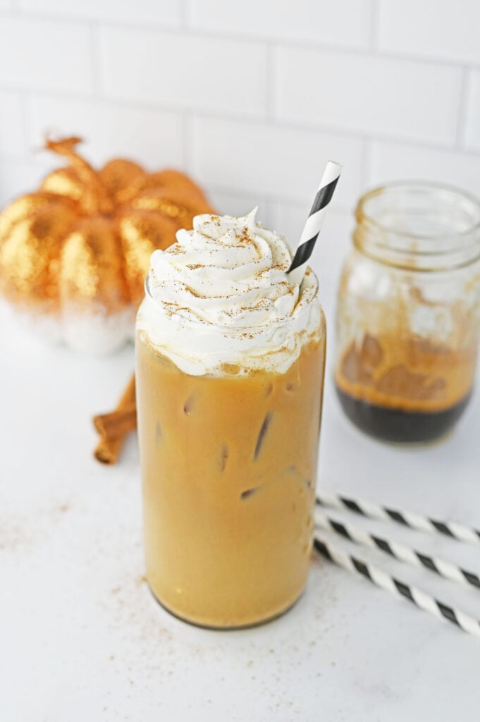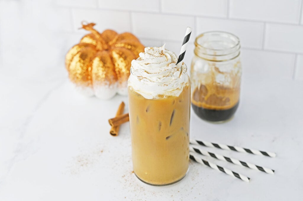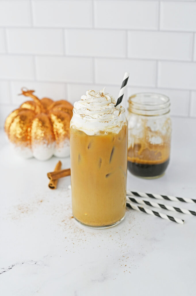 If you are looking for a way to make your own Iced Pumpkin Spice Latte at home I’ve got you. This makes for a delicious drink that is sure to hit those pumpkin cravings, plus, you can make one anytime you want if you keep a few ingredients on hand. We used easy, instant espresso to make ours, but you can use your cold brew coffee or premade espresso, too. In my personal opinion, this recipe is better than the coffee shop version. Plus, you know what ingredients are in your drink, and you can use any milk you like- coconut milk, oat milk, soy milk, or another non-dairy milk.